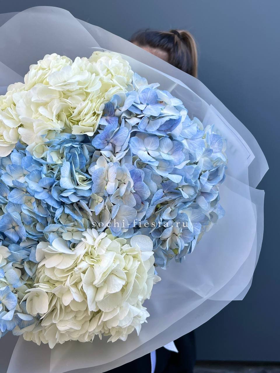 гортензия - 5 шт., лента, дизайнерская упаковка.