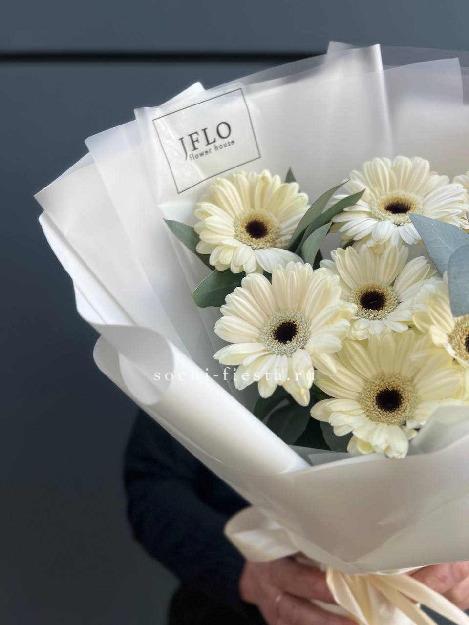 голландская гербера 7 шт., лента, дизайнерская упаковка Оттенок гербер может быть согласован с заказчиком.