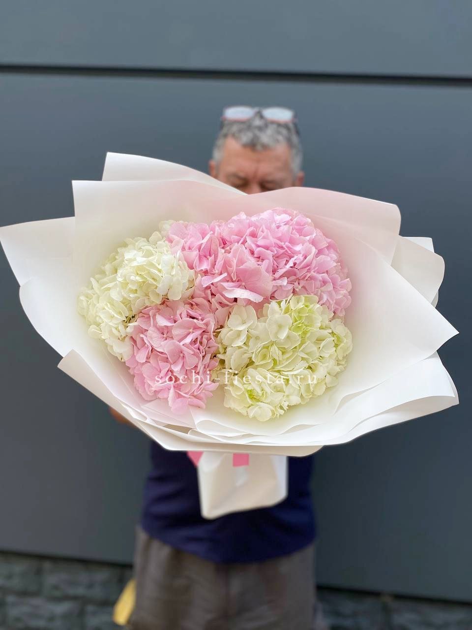 гортензия - 11 шт., лента, дизайнерская упаковка.
