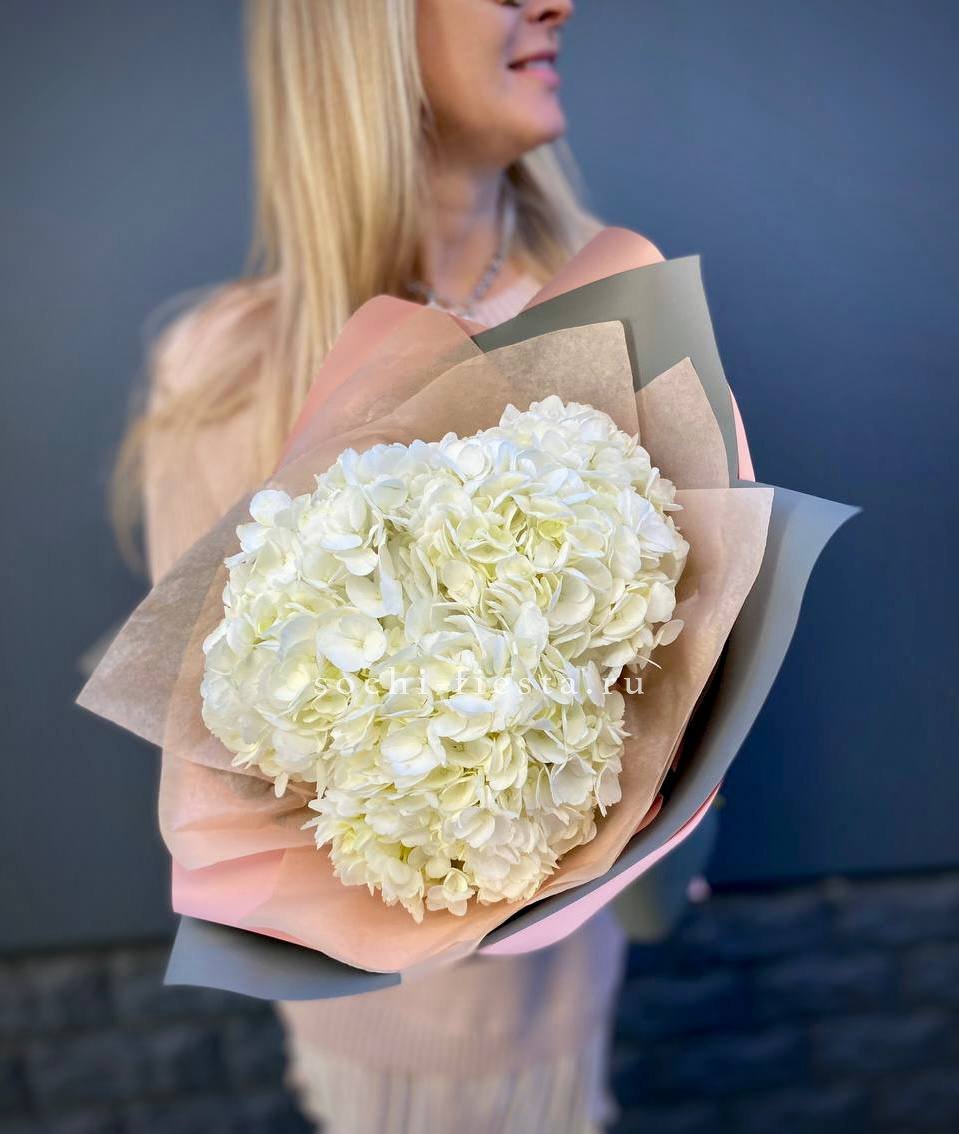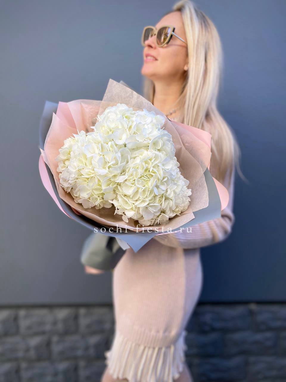 гортензия - 3 шт., лента, дизайнерская упаковка.