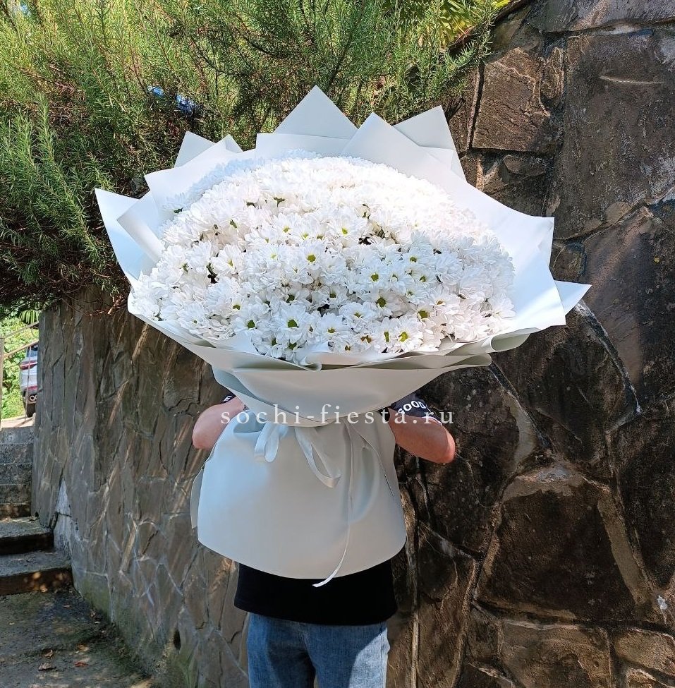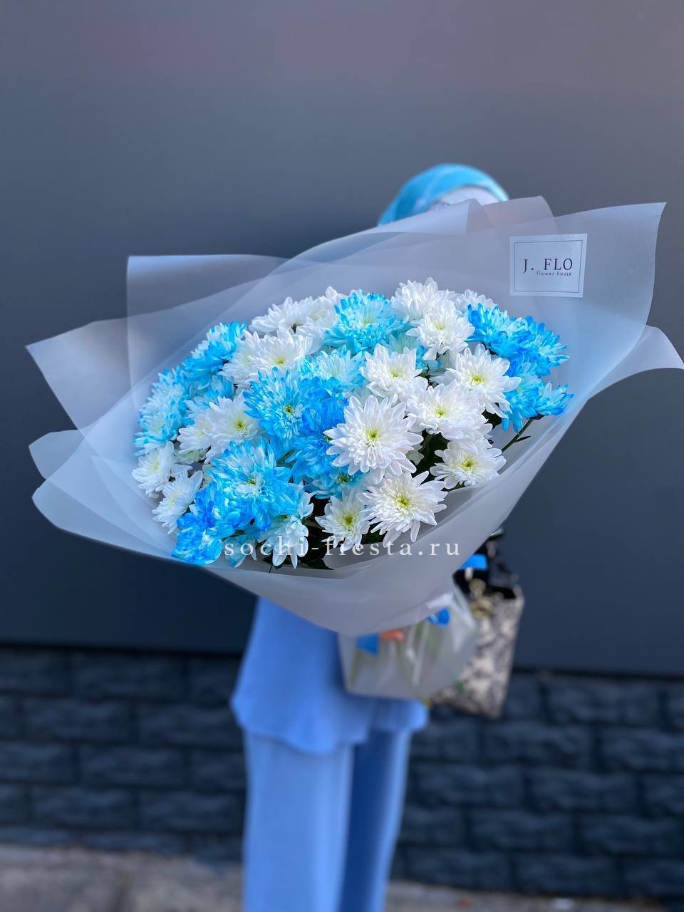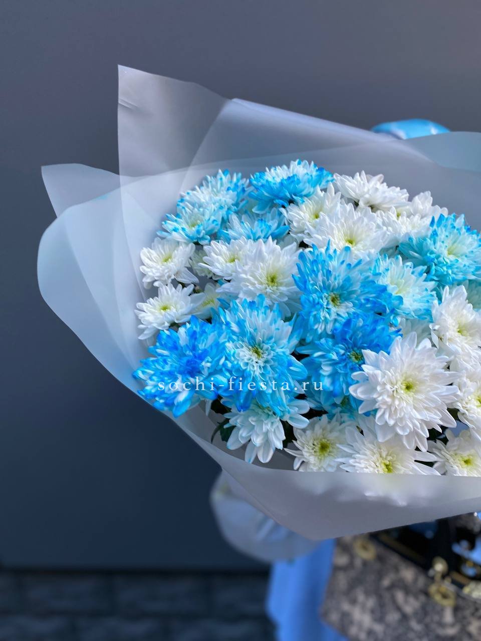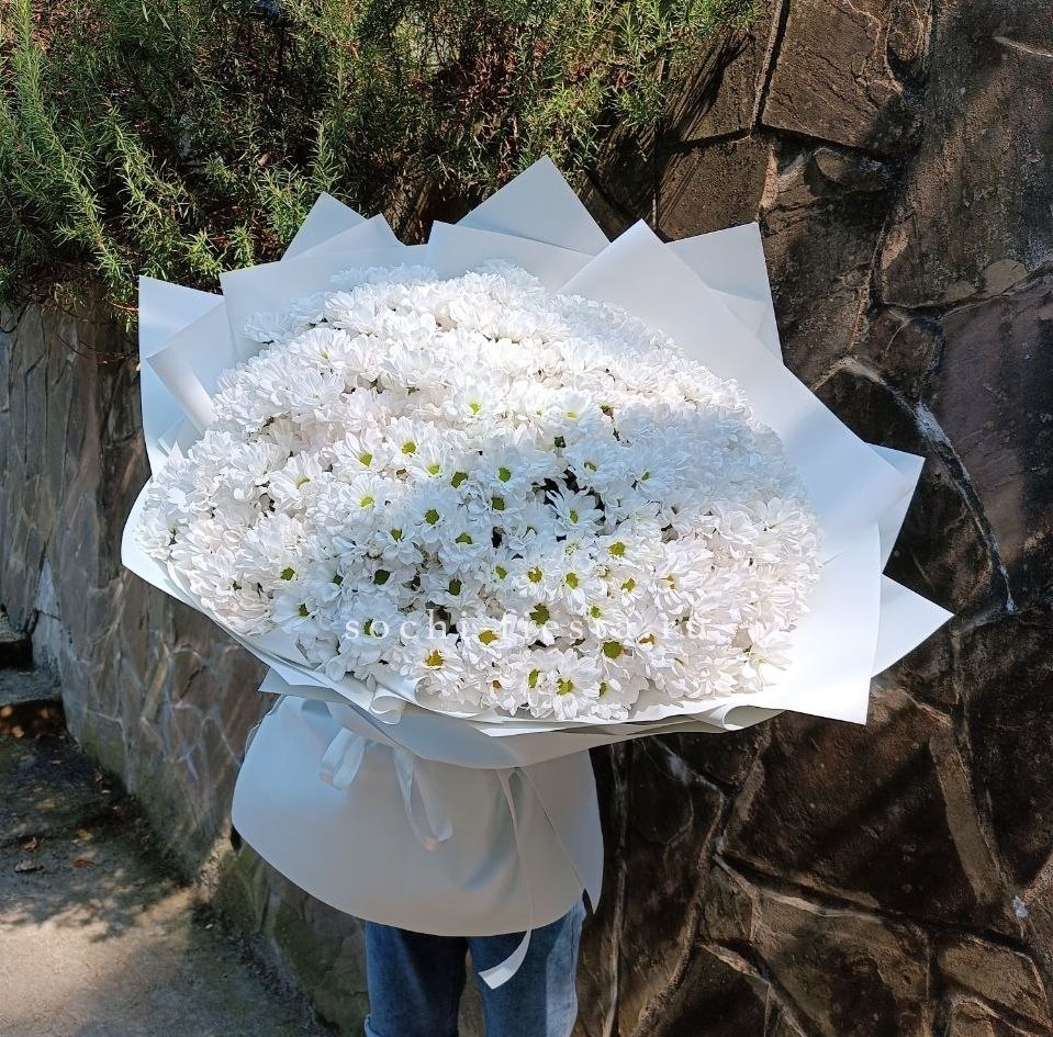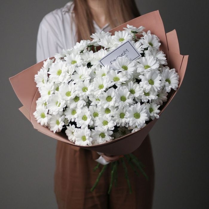 хризантема кустовая - 17 веток, тишью, дизайнерская упаковка, лента.