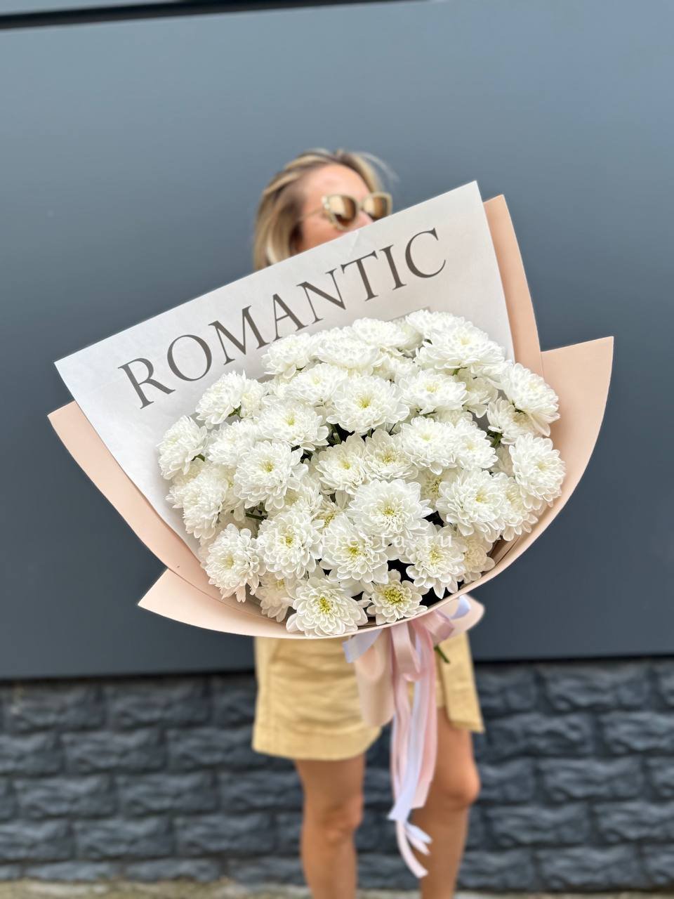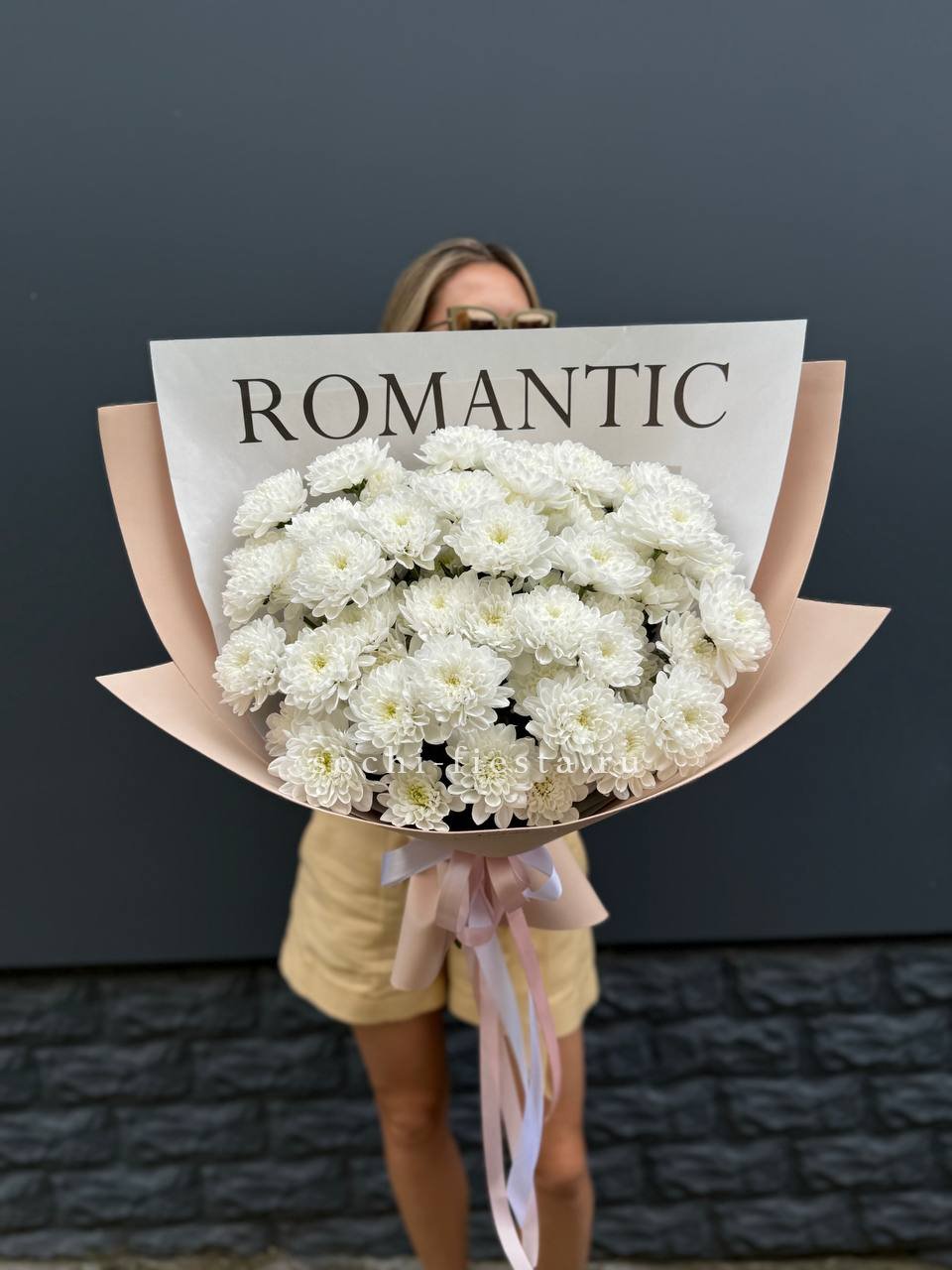 хризантема кустовая - 9 шт., лагурус, пленка,  лента.