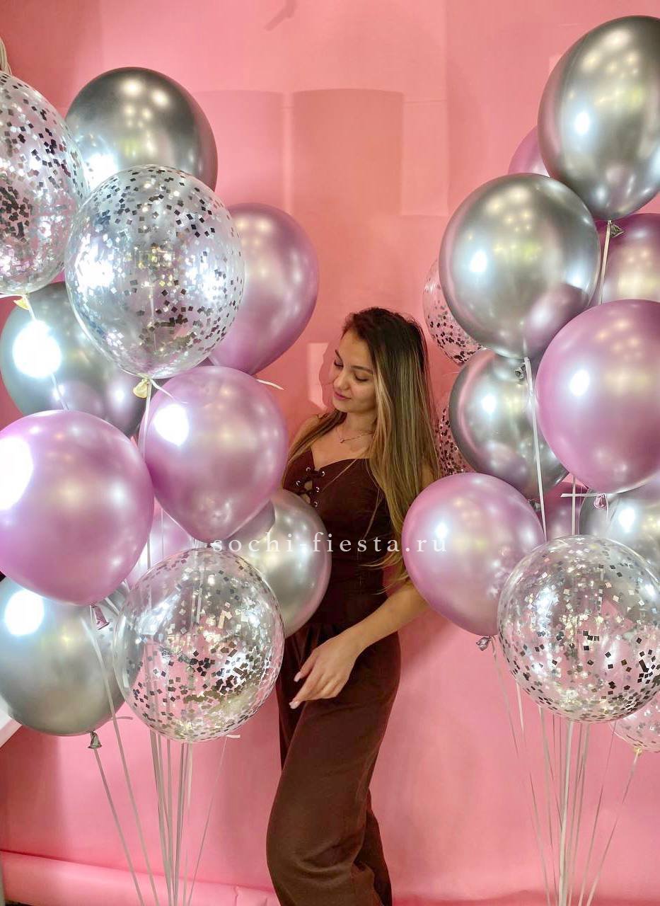 облако из 21 гелиевого шара в пастельно-ягодных тонах, грузик.