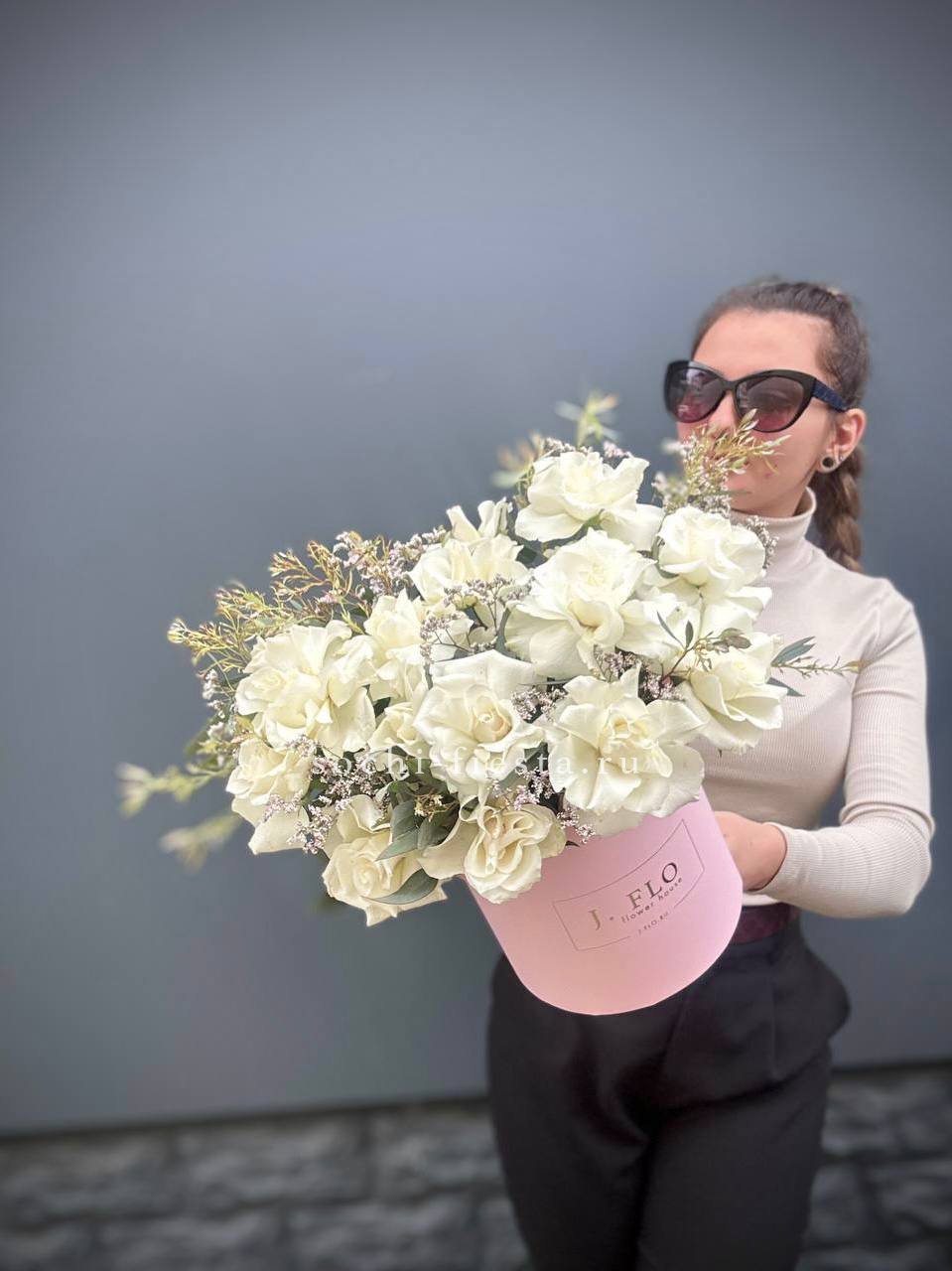 Для заказа товара "17 Французских белых роз в коробке Афина" с доставкой в Пскове нажмите в корзину
