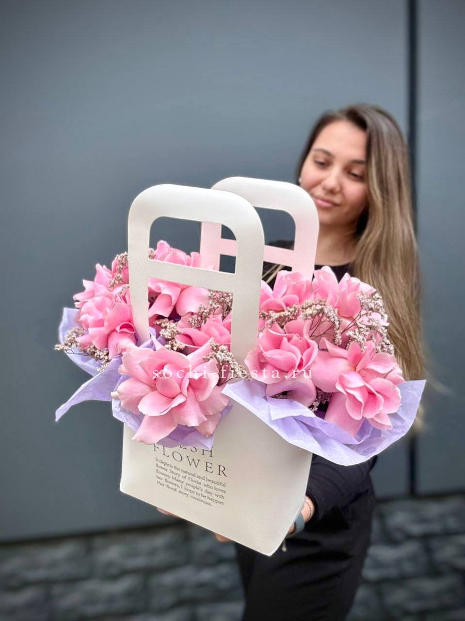 Мы работаем только со свежими цветами — букеты радуют от 7 до 14 дней и дольше при правильном уходе.