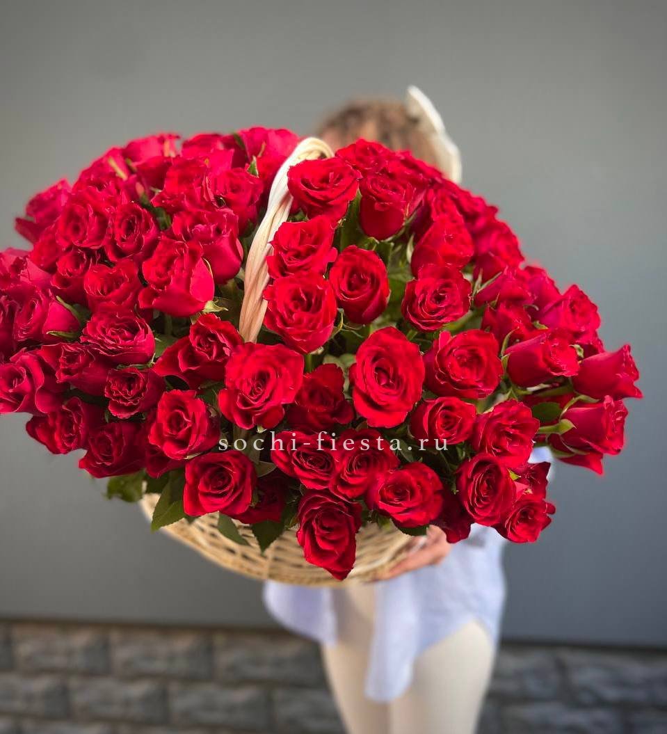 кустовые розы, одноголовые розы, диантусы,  гортензия, эустома, антиринум, озатамус, хризантема, герберы, лента, светлая корзина.Состав может меняться в зависимости от сезонности.