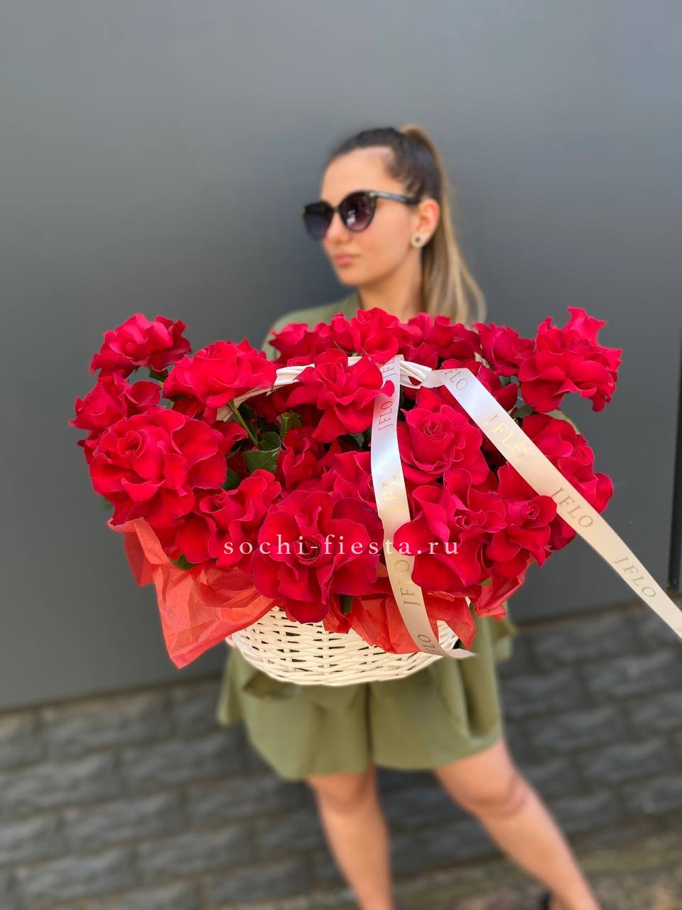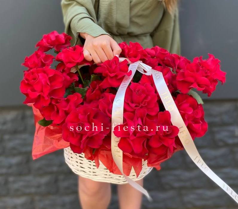 Для заказа товара "Красные французские розы в корзине" с доставкой в Пскове нажмите в корзину