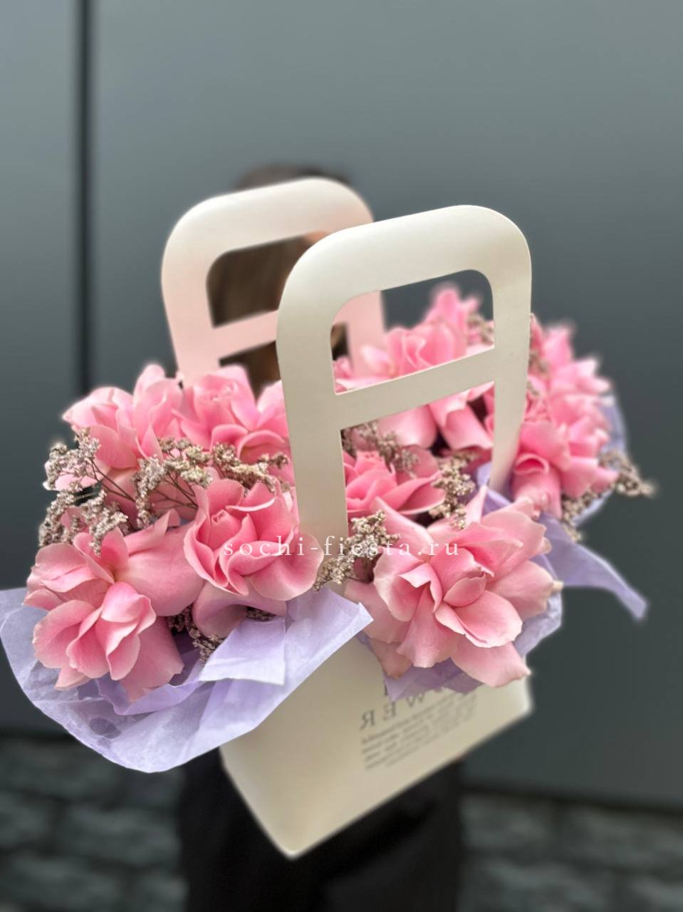 Мы работаем только со свежими цветами — букеты радуют от 7 до 14 дней и дольше при правильном уходе.