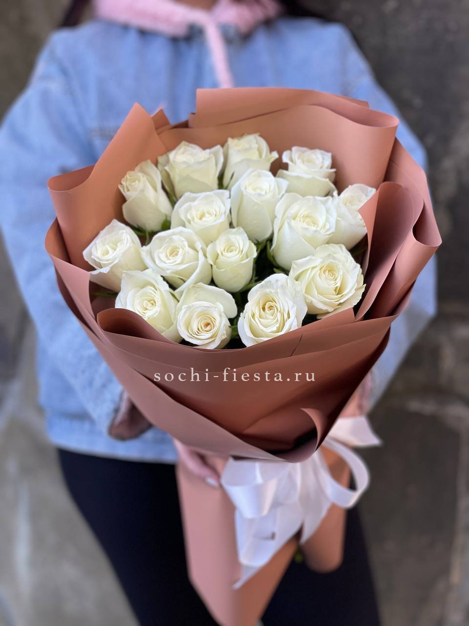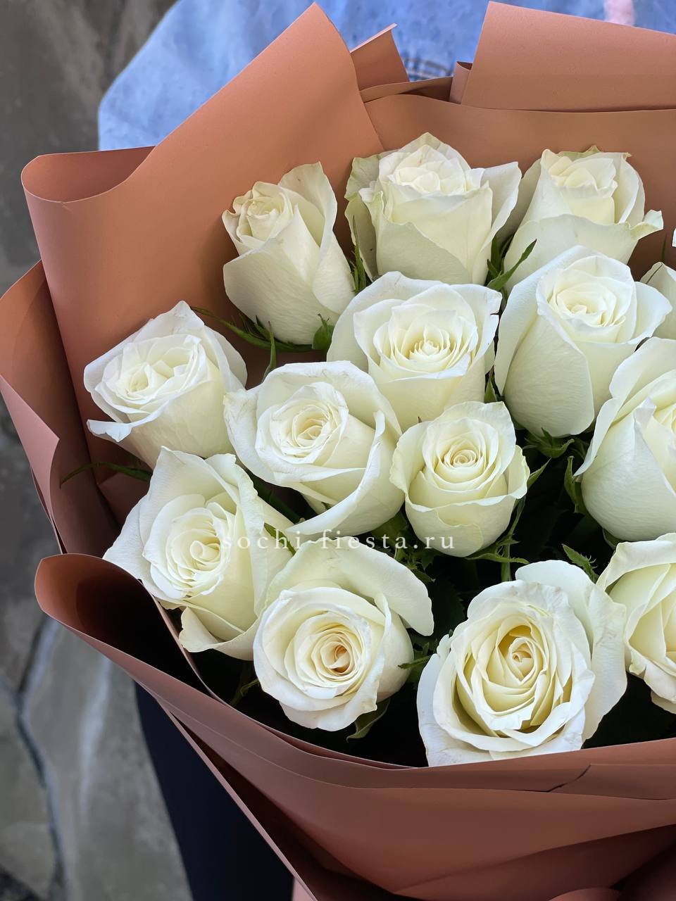 Тридцать один белый бутон формирует внушительную композицию, которая привлекает внимание своим присутствием. Букет выглядит цельно и заполняет собой любое пространство.