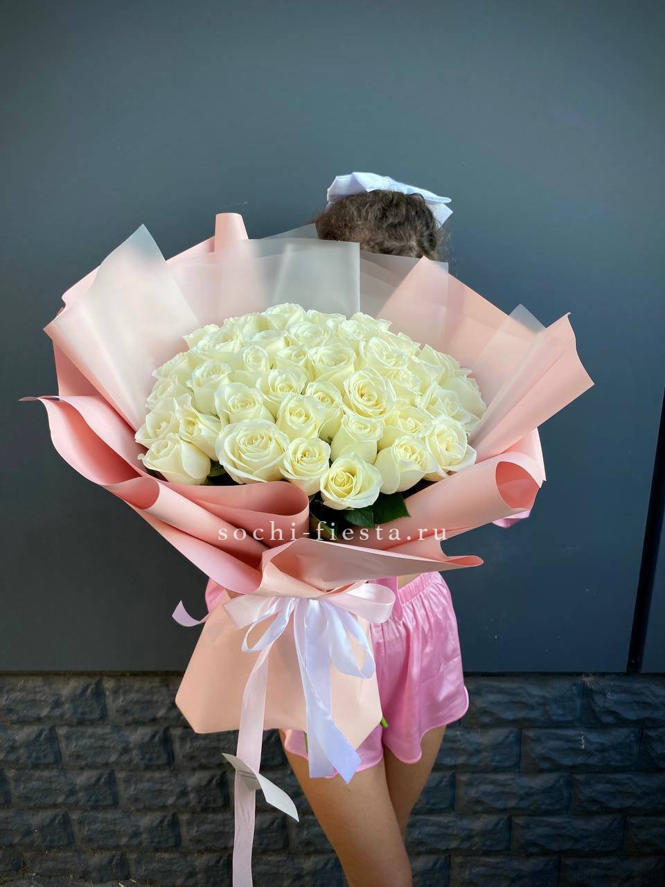 белые розы 35 шт., лента, упаковка на выборВы можете выбрать любое количество.