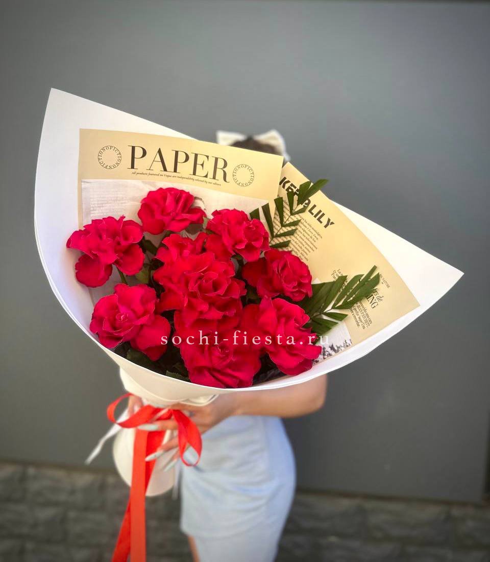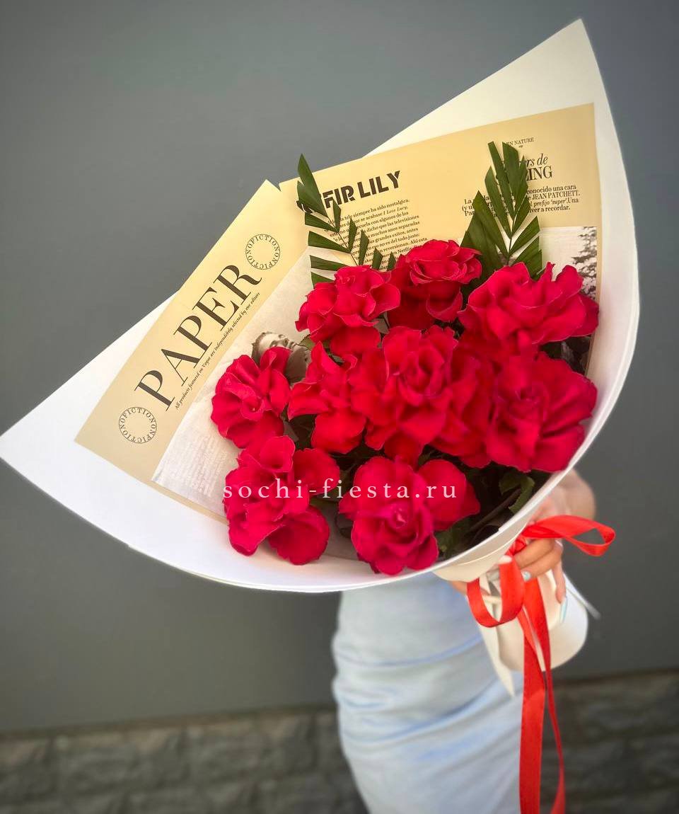33 красных роз, лента, дизайнерская упаковка Вы можете выбрать желаемое количество цветов данном в букете.