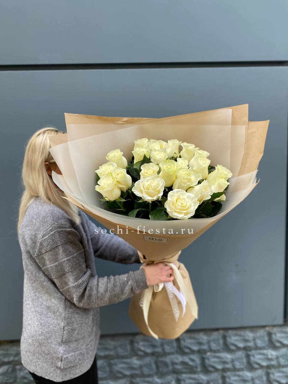 Для заказа товара " Букет высоких белых роз " с доставкой в Пскове нажмите в корзину