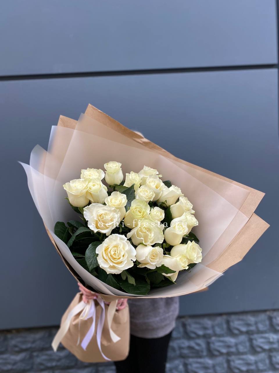 Букет высоких белых роз