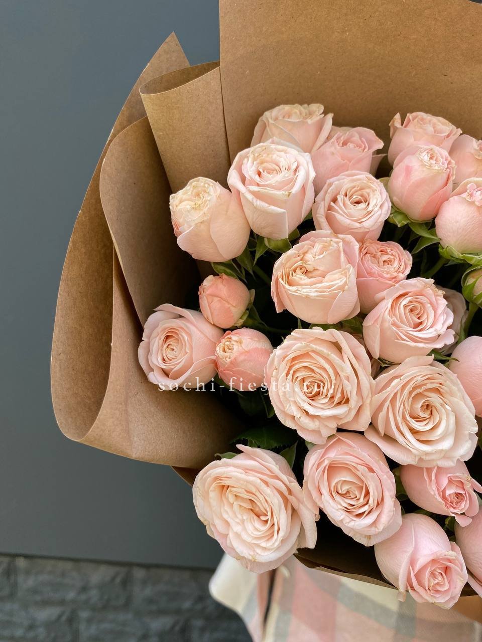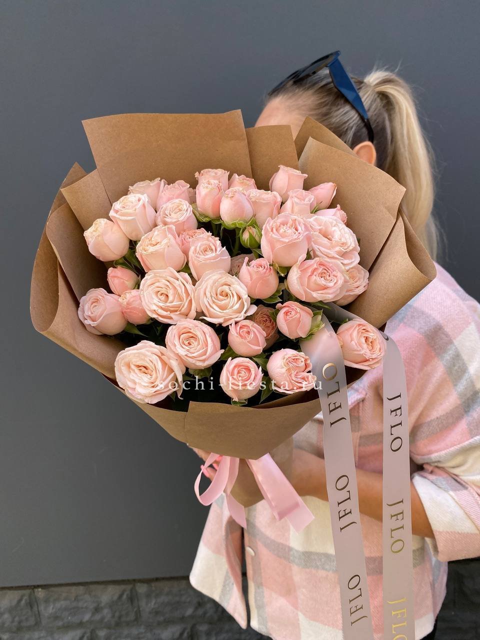 Для заказа товара "Кустовые розы Бомбастик в крафте" с доставкой в Пскове нажмите в корзину