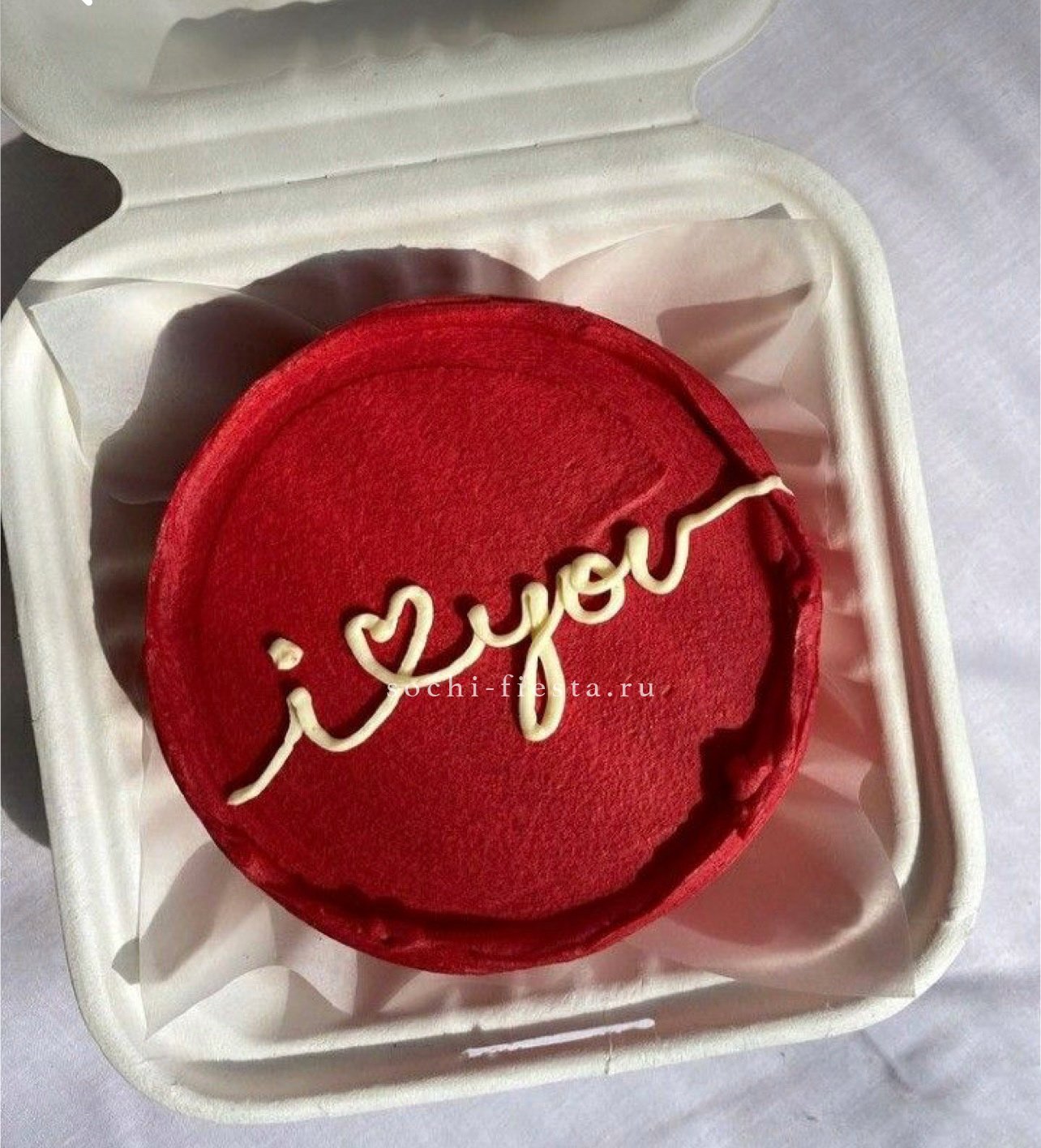 Миниатюрный торт с яркой надписью и домашним теплом в каждом слое. Крем держит форму, а бисквит остается влажным благодаря небольшому объему и свежести выпечки.