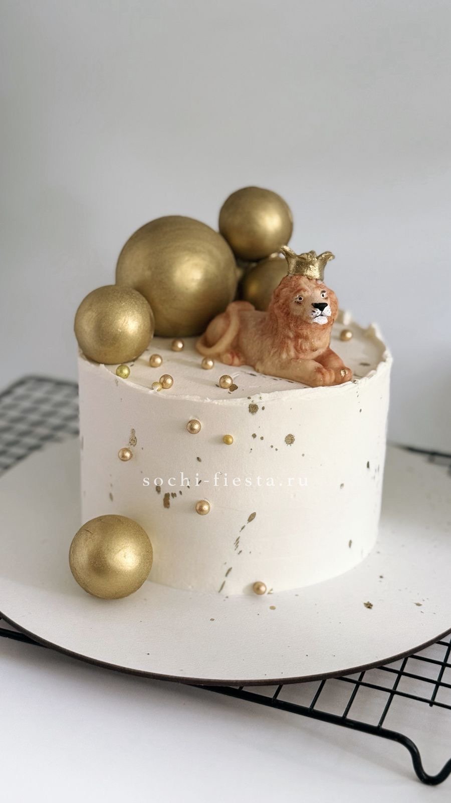 Дизайнерский торт с образом льва создает впечатление силы и уверенности. Ручная проработка деталей делает композицию объемной и выразительной.